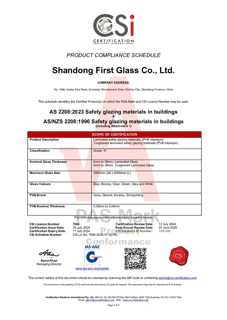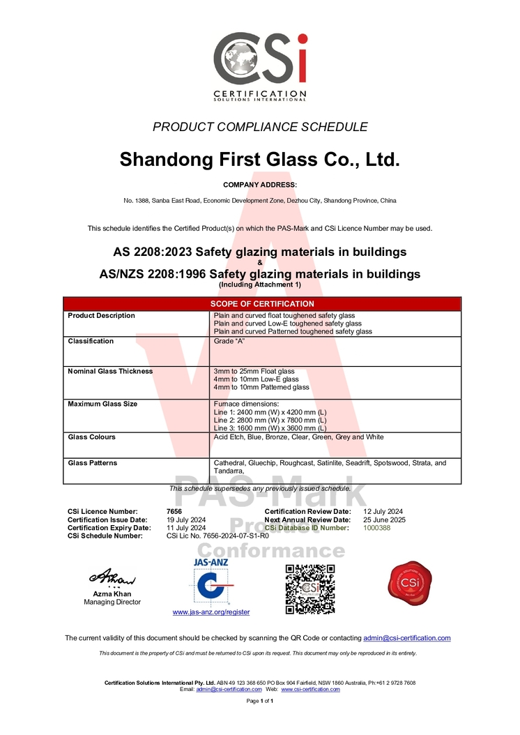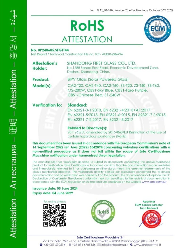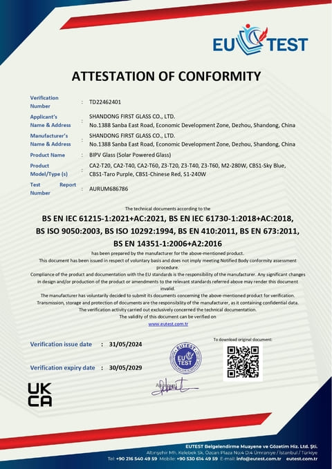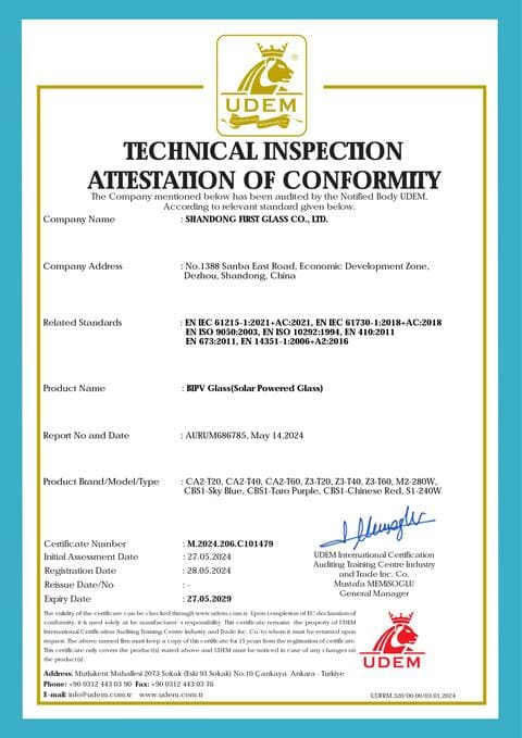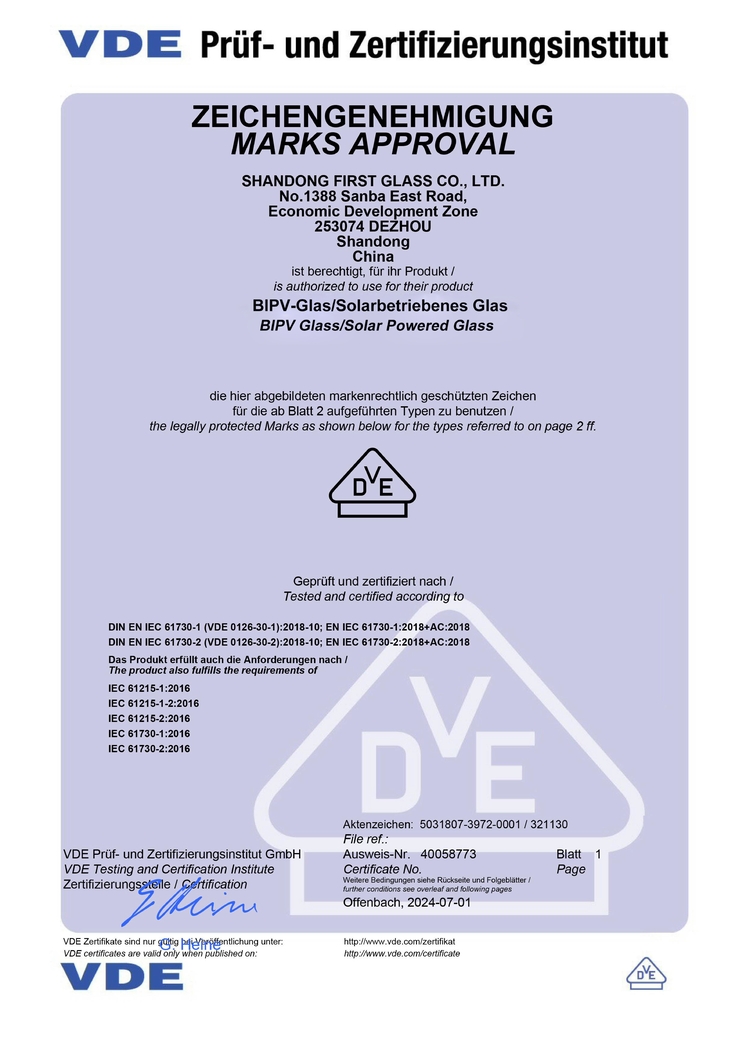 Mantenemos estándares de alta calidad para garantizar la seguridad y el rendimiento de nuestros productos. Con más de 20 certificaciones nacionales e internacionales, nuestro compromiso con la calidad y la confiabilidad está bien establecido. Estamos comprometidos a proporcionar vidrio BIPV/vidrio con energía solar de alta calidad y asequible y cumplir con estrictos estándares de calidad.