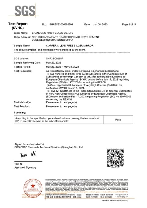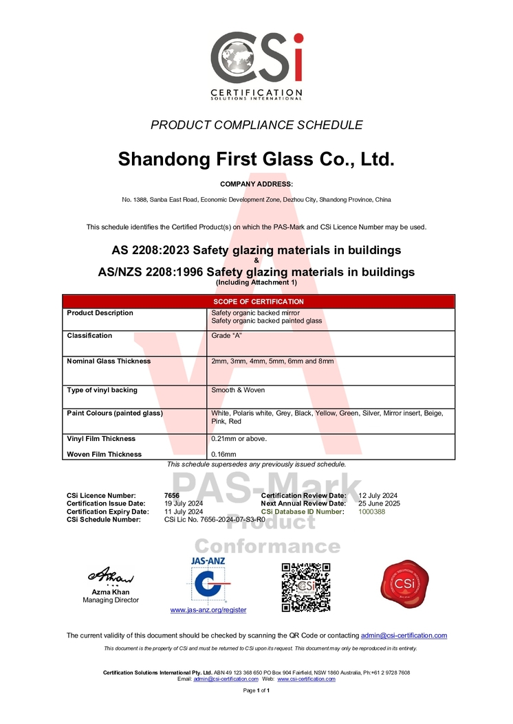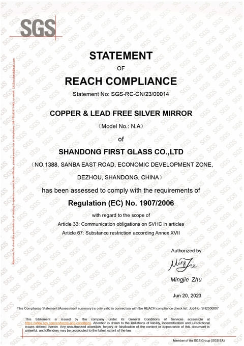 Nuestro espejo tiene certificación CE, Rohs, Reach, informe de prueba Svhc de SGS y certificación CSI australiana. La calidad cumple totalmente con los estándares de calidad europeos y australianos. Contamos con 7 tipos de espejos. Son Espejo Temperable, Espejo Trasero de Vinilo, Espejo Templado, Espejo Plateado, Espejo de Aluminio, Espejo Sin Cobre y Espejo Antiguo.
